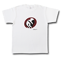 白Tシャツに黒と赤の2色でシルクプリントしています。